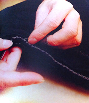 金色という色から発せられる、特別なもの、高級感、貴重、才能といったイメージは、一針、一針を丁寧に心をこめて扱い、金の針で更に美しく蘇らせるという意味に加えて、通常よりも高い満足感が得られるような仕上がりをめざして対応したいという思い、確かな技術力で幅広く対応するという誓いから生まれました。