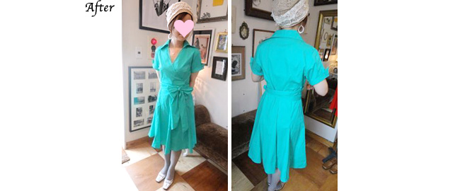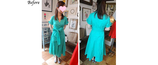 ネットで一目惚れした綺麗なグリーンのワンピースでしたが、サイズがどう考えても大きい…少し、じゃなくてとても大きい!でも、この色!この形!この値段!絶対欲しい~と購入してしまいました。