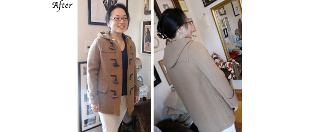 直す前は全体にダボダボで布団を着ているようだったのを、体に合うようにしていただきました。