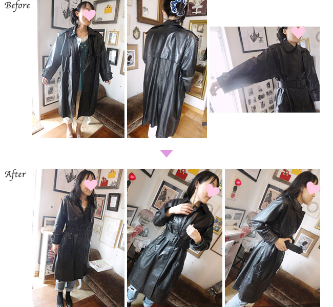 知り合いから頂いたレザーコートは、丈だけ私に合うだけで後はサイズがかなり大きいレザーのコートでした。