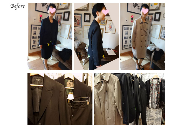 大幅なサイズダウンで大変なお手間だったと思います。どれも体形にフィットしてこれからの季節に活躍してくれそうで、お出かけがとても楽しみになりました。