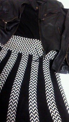 今日はモノトーン。 なんだかんだ使いまわせるライダースを、あえて女らしく使おうと。 黒を重ねる際には、素材感が同じようになり過ぎないようにすることが、ポイント。 スカートはニット素材でフレアがあるシルエット。 揺れ動くので、ハードな革素材に対して、かなりやわらかさをプラスしてくれる存在。 お直しは、スカート幅を狭くして、腰ではけるようにしてあります。