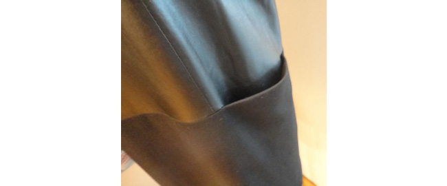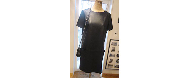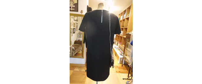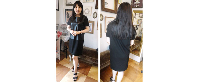 マリカさんの体型、骨格に合わせたラインで(見た目はすっきりとしていますが)、素材もレザーとウール&シルクと立体感のある凝ったワンピースでしたので、一枚でも存在感があり、様々なシーンに使っていただけるかな?と思いました。シンプルに見えて、凝っているのがポイントです。