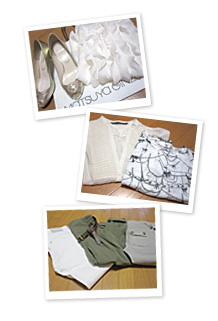私は、今回自分の持っている服のコーディネートをどういう風にすれば、もっと素敵に見えるのかということを視覚的に勉強したかったので、純さんに沢山のアイテムを平面でコーディネートしていただきました。